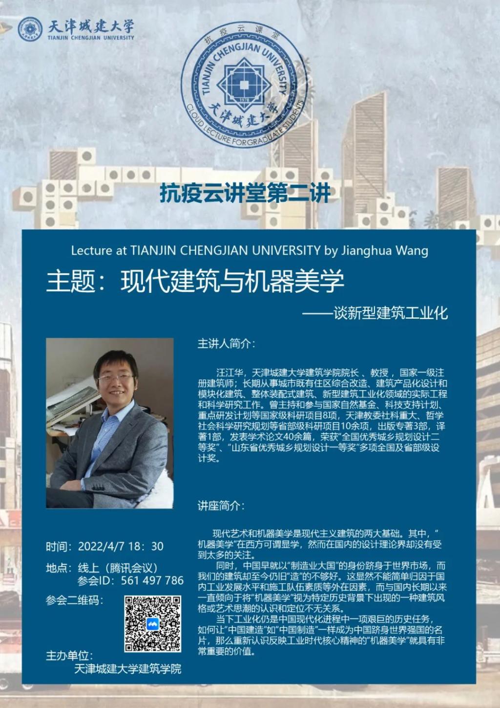 为了进一步丰富williamhill官网学生在疫情期间的课余生活,营造良好的学术氛围,助力专业能力提升,共享云端学术交流平台,williamhill官网特别开设“抗疫云讲堂”专题系列讲座,战疫不停学,建筑师生相聚“云端”。