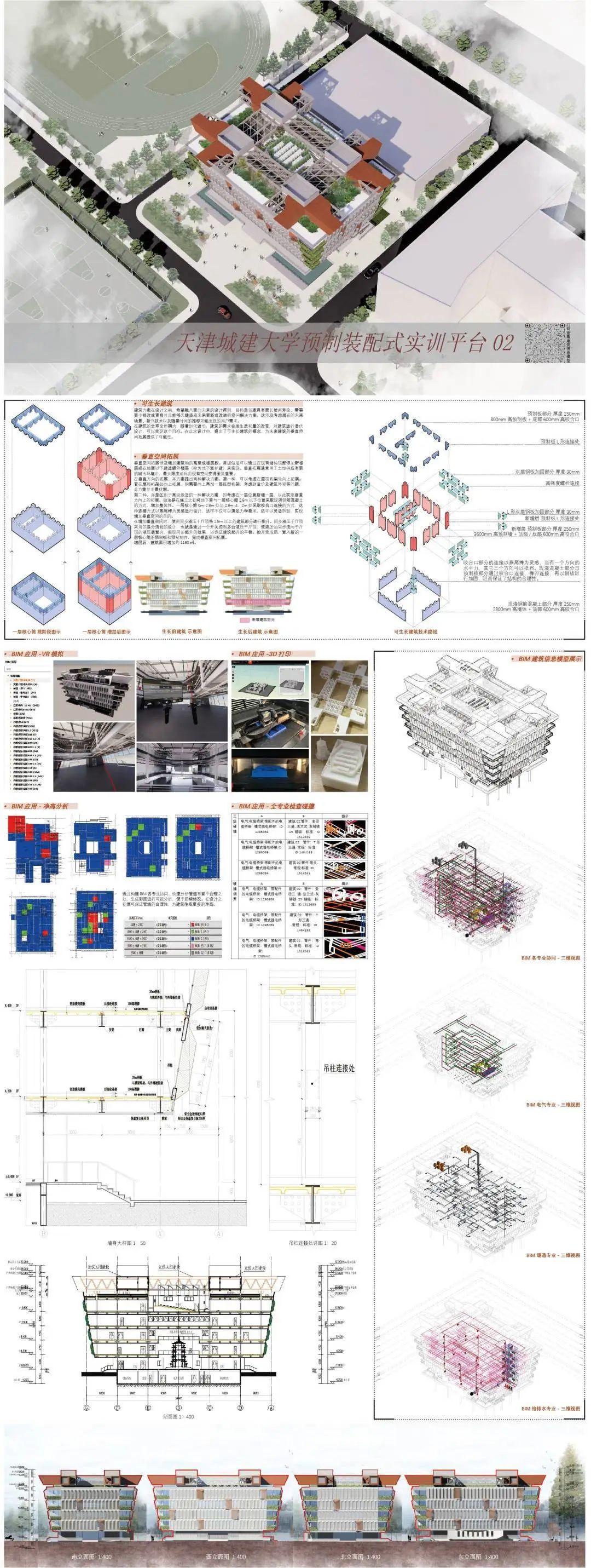 我院代表队选择参加工业化建筑全流程协同应用。参赛项目《williamhill官网中国预制装配式实训平台》是为williamhill官网中国设计营建一座绿建实训平台。基地位于williamhill官网中国校园内。本工程设计是基于“绿色、低碳和可持续发展”的设计理念,以建筑工业化为背景的预制装配式营建技术,通过BIM平台多专业协同的、建筑全寿命过程高效运营的管理方式,为学校师生提供一处面向未来的物化领地和精神场所。经过几十次优化设计,实现了高预制率与高装配率。