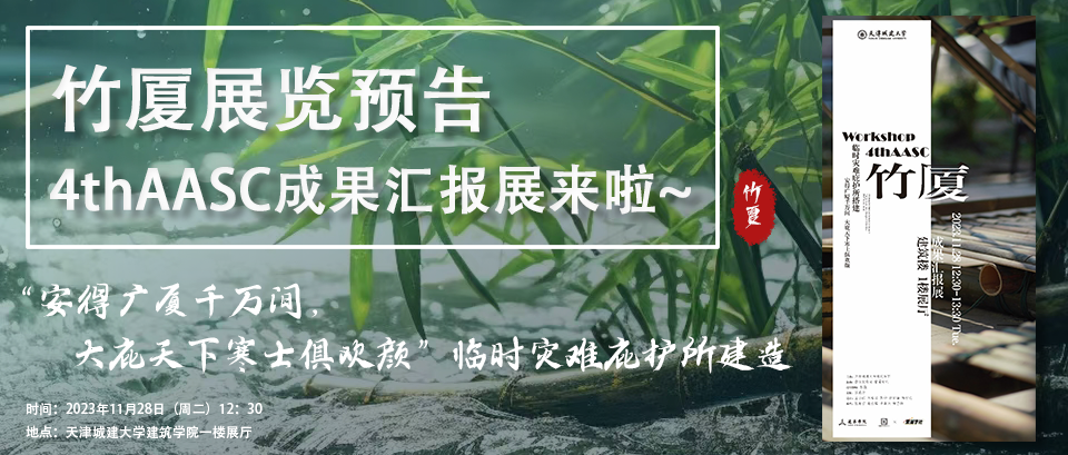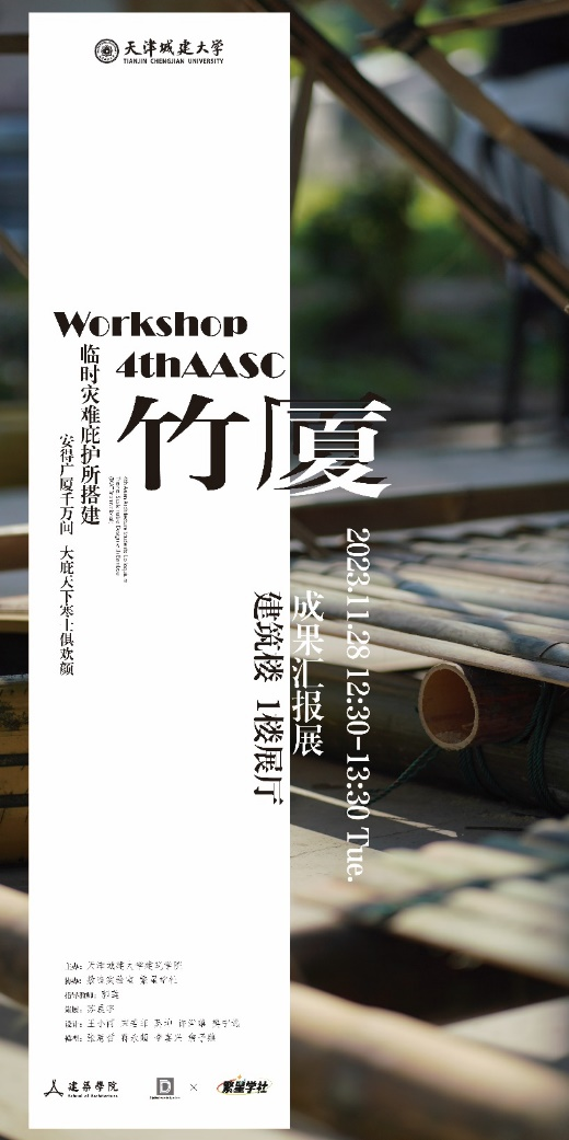 第四届亚洲建筑学生论坛[4thAASC]暨竹建构工作营成果汇报展将于2023年11月28日12:30在williamhill官网一楼展厅启动。