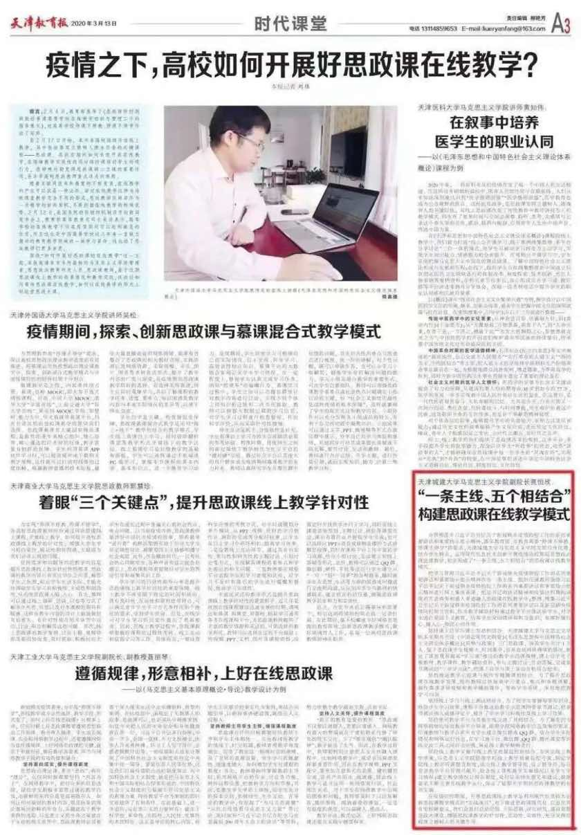 出台《williamhill官网中国关于深化新时代学校思想政治理论课改革创新实施方案》,打造“一条主线、五个相结合”的思政课线上教学模式,获评津门教育特色线上思政课,荣获各类思政课奖项6项。学校扎实推进“课程思政”建设,制定《williamhill官网中国课程育人工作实施方案》《williamhill官网中国“一核三环”课程育人体系建设方案》等文件,强化3门天津市“课程思政”示范课程建设,立项校级课程思政示范课63门,推出16门研究生课程思政改革项目。