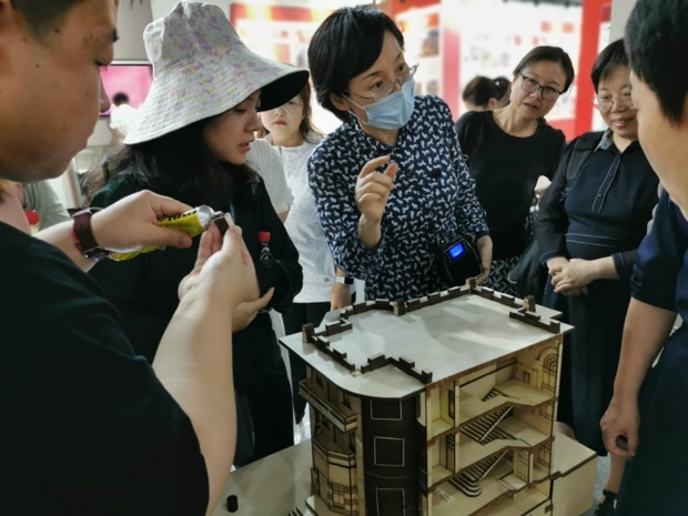 在革命丰碑展馆的红色劳动工坊,学员们对我校将红色资源保护利用融入第一课堂和第二课堂、将思政教育和劳动教育相融合的教学与实践情况进行了调研,对学生在建筑测绘、中国建筑史等课程中制作红色旧址木工实体模型的劳育实践环节产生了浓厚的兴趣,深入了解学生利用激光切割等手段设计、制作红色旧址复原模型的工艺原理和加工流程,学员代表还分组进行了沉浸式模型构件的安装体验,更加活跃了本次现场教学的气氛。通过参观学员们对进一步开展红色资源保护工作的迫切性和重要意义产生了巨大的共鸣,对探索红色资源的保护利用与高校科研与教学相结合的有效路径进行了深入思考。