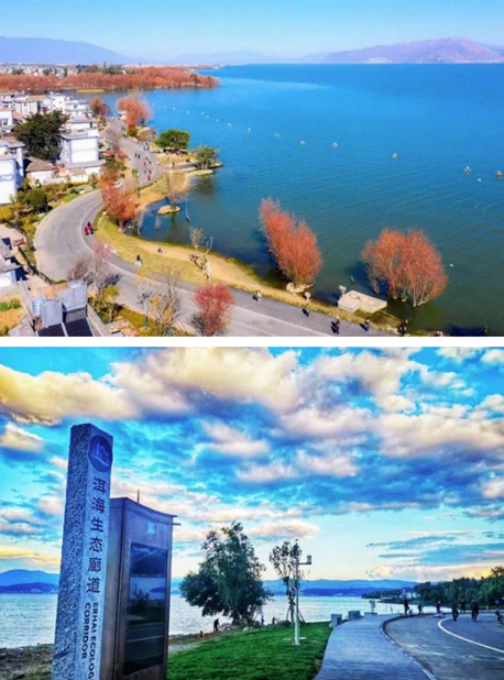 工程按照“世界级项目,世界级规划设计”高标准严要求,努力打造人水和谐生命共同体和世界级精品工程的生动实践。目前,洱海生态廊道已成为全球游客的网红打卡地。生态廊道工程是山水林田湖草系统一体化治理,兼顾生态、旅游、乡村振兴等多元素的“巨系统”。在“生态优先、生态安全、整体规划、系统治理”设计原则和“净化入湖污染、提升洱海水质、确保水源安全、改善洱海生态”建设目标的指引下,规划蓝图。生态廊道建设工程体系方面,规划了生态搬迁、生态修复、湿地建设、管网完善、生态监测廊道、文化风貌提升等内容。通过打造集生态、康养等于一体的环湖慢行通道系统,展示大理白族文化、建筑风貌,形成新的自然景观点,提升洱海旅游价值。